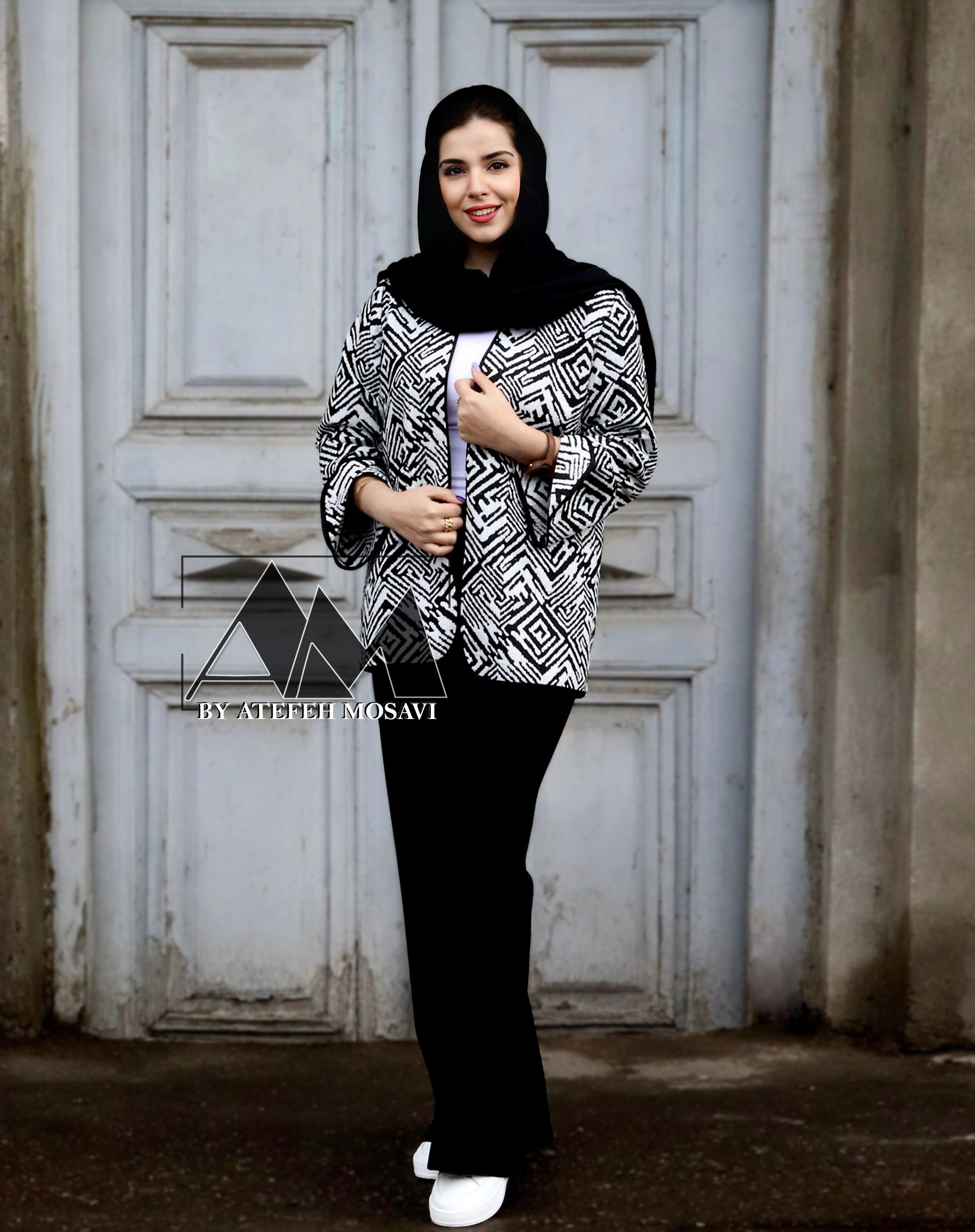 کت پرین طرح سیاه سفید جنس ژاکارد ترکناموجود