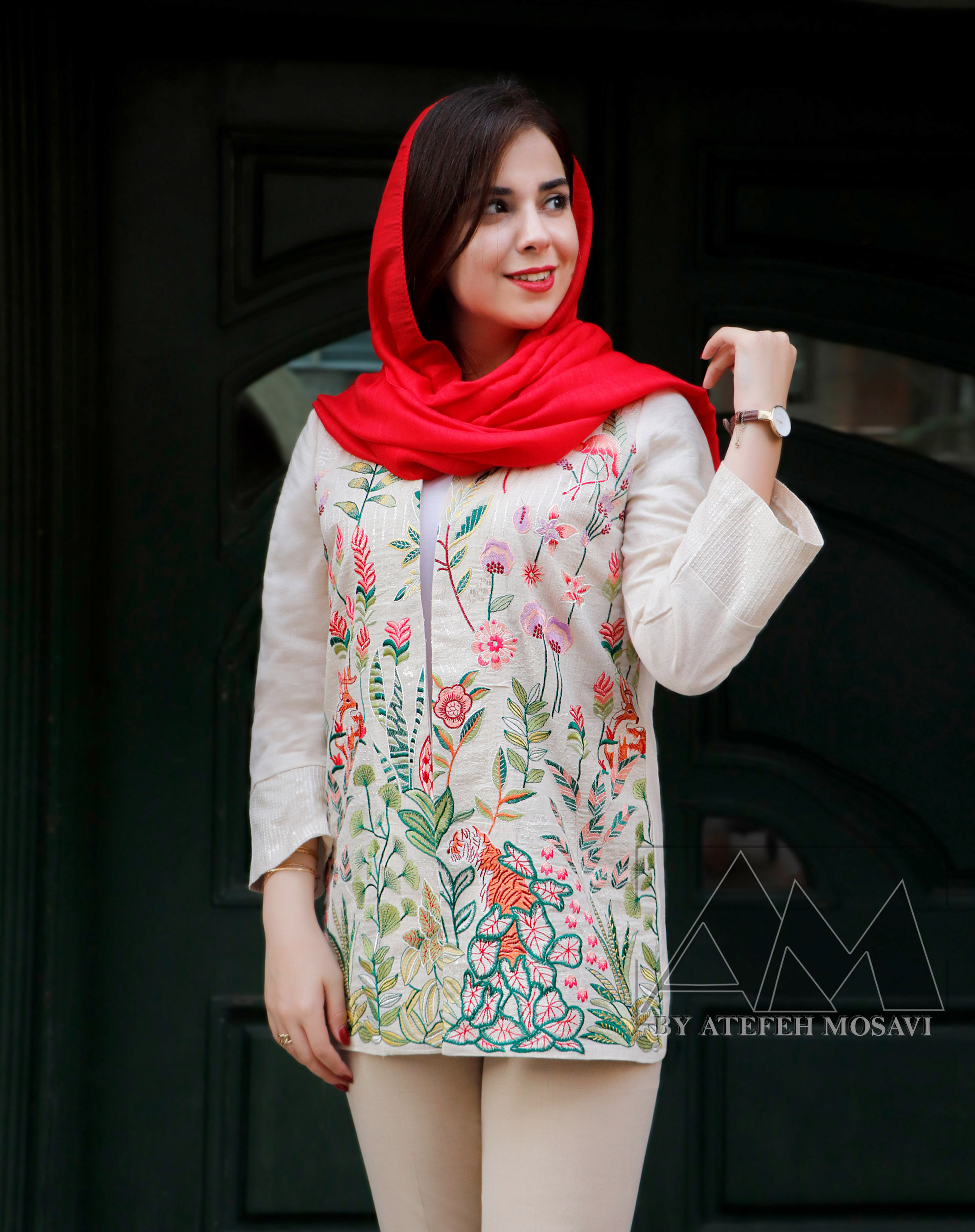 مانتو فلامینگو.جنس لینن سوزندوزی و پولک دوزی درجه یک وارداتی هندناموجود