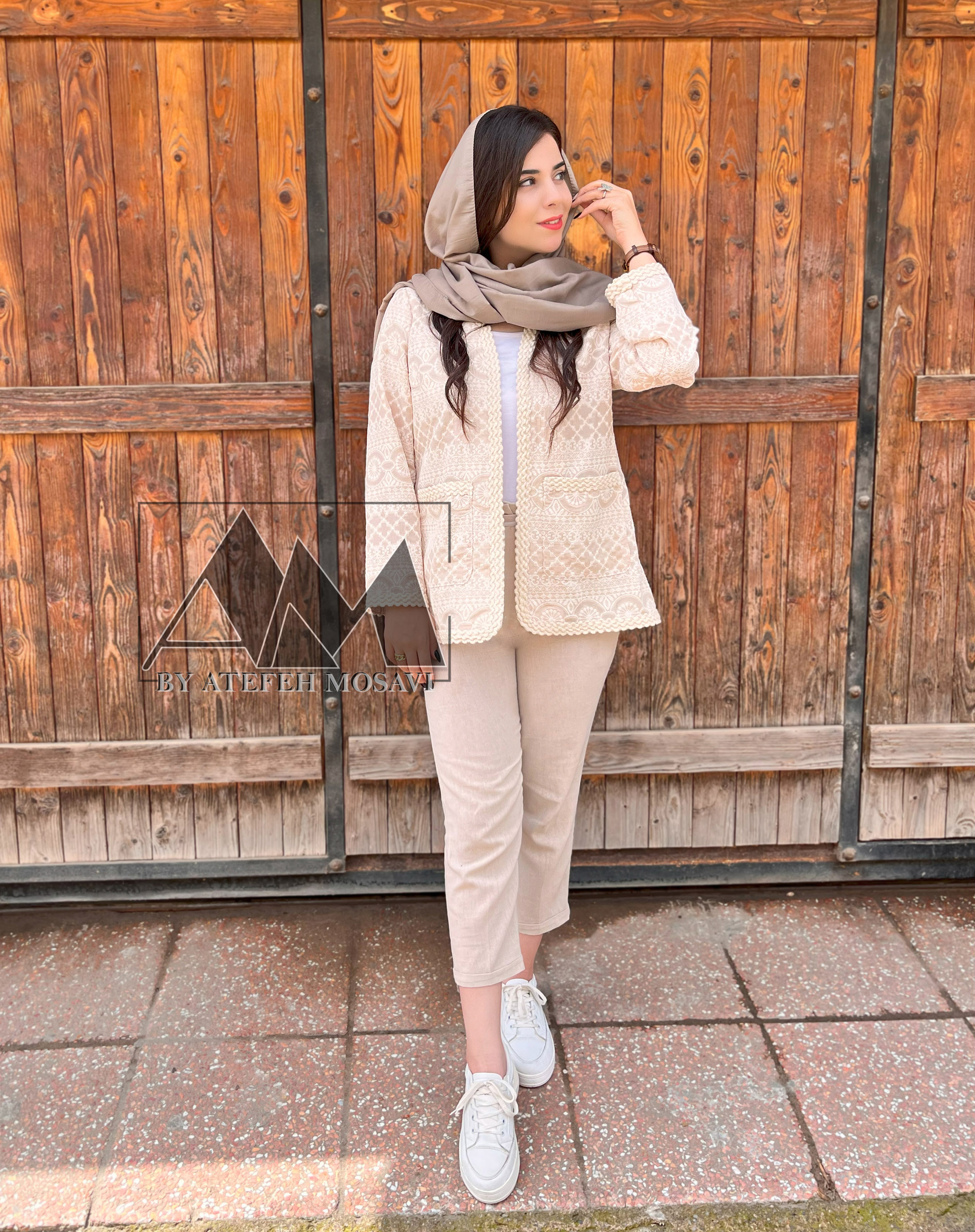 این کت بسیار زیبامون لینن سوزندوزی vip هستش .کت به صورت کامل لایی کشی شده.لبه های کت مغزی دوزی با نوار کتان انجام شده وجیب ها قابل استفاده هستند.