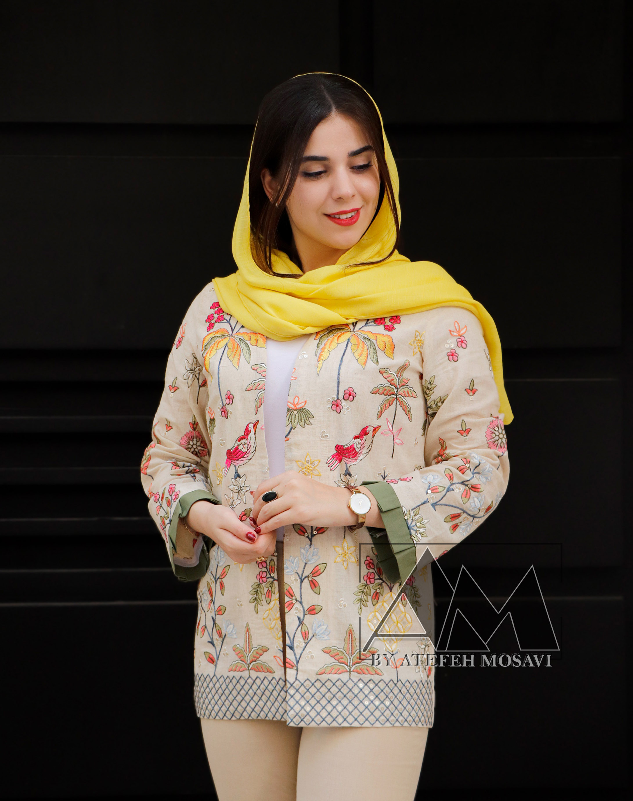 کت قناری.جنس لینن سوزندوزی و پولک دوزی درجه یک وارداتی هند
